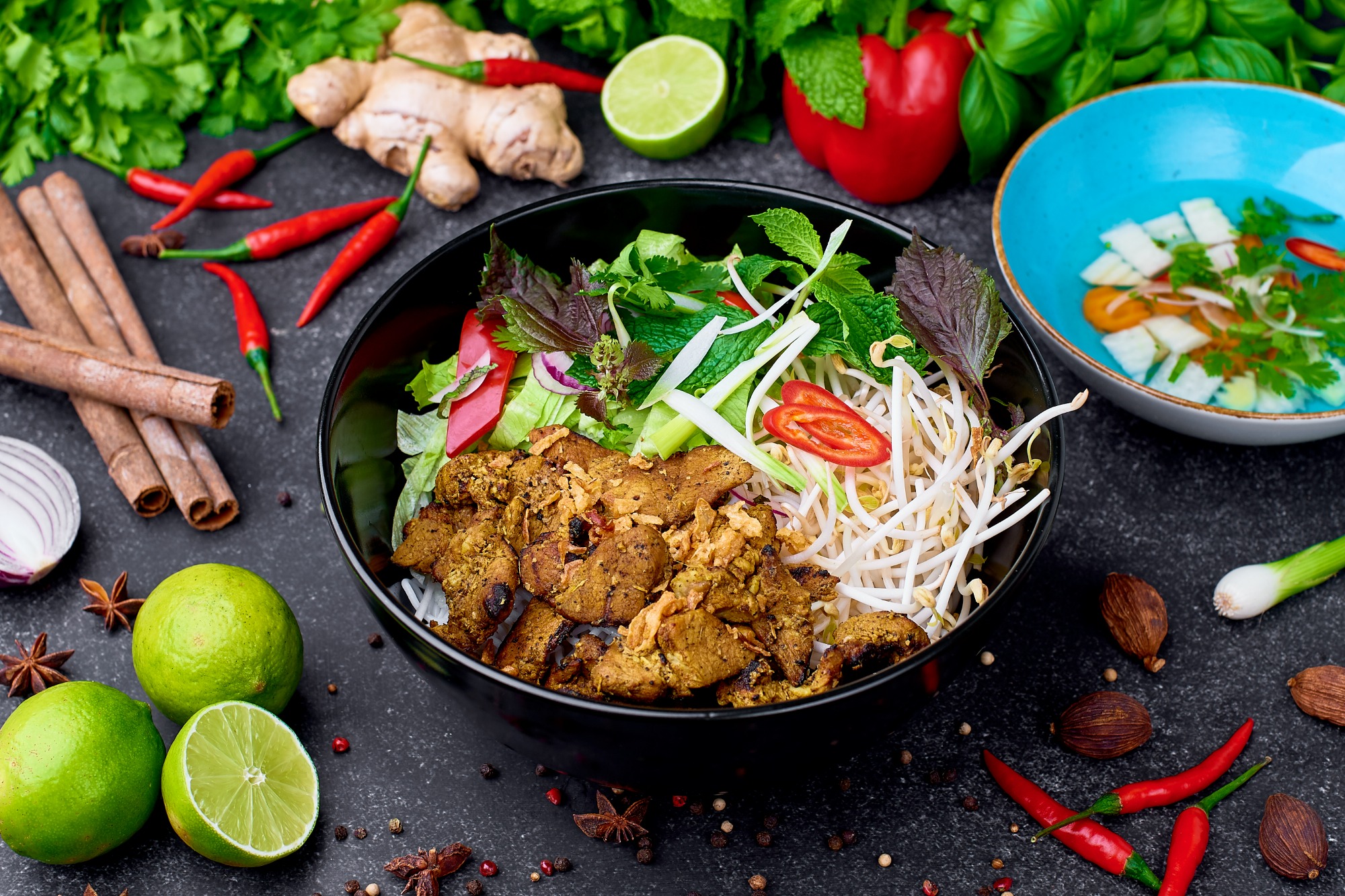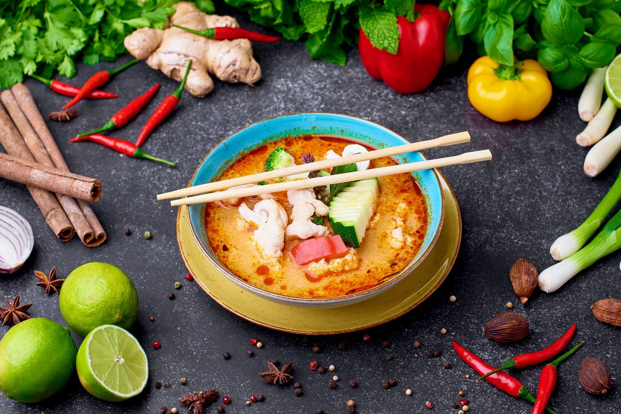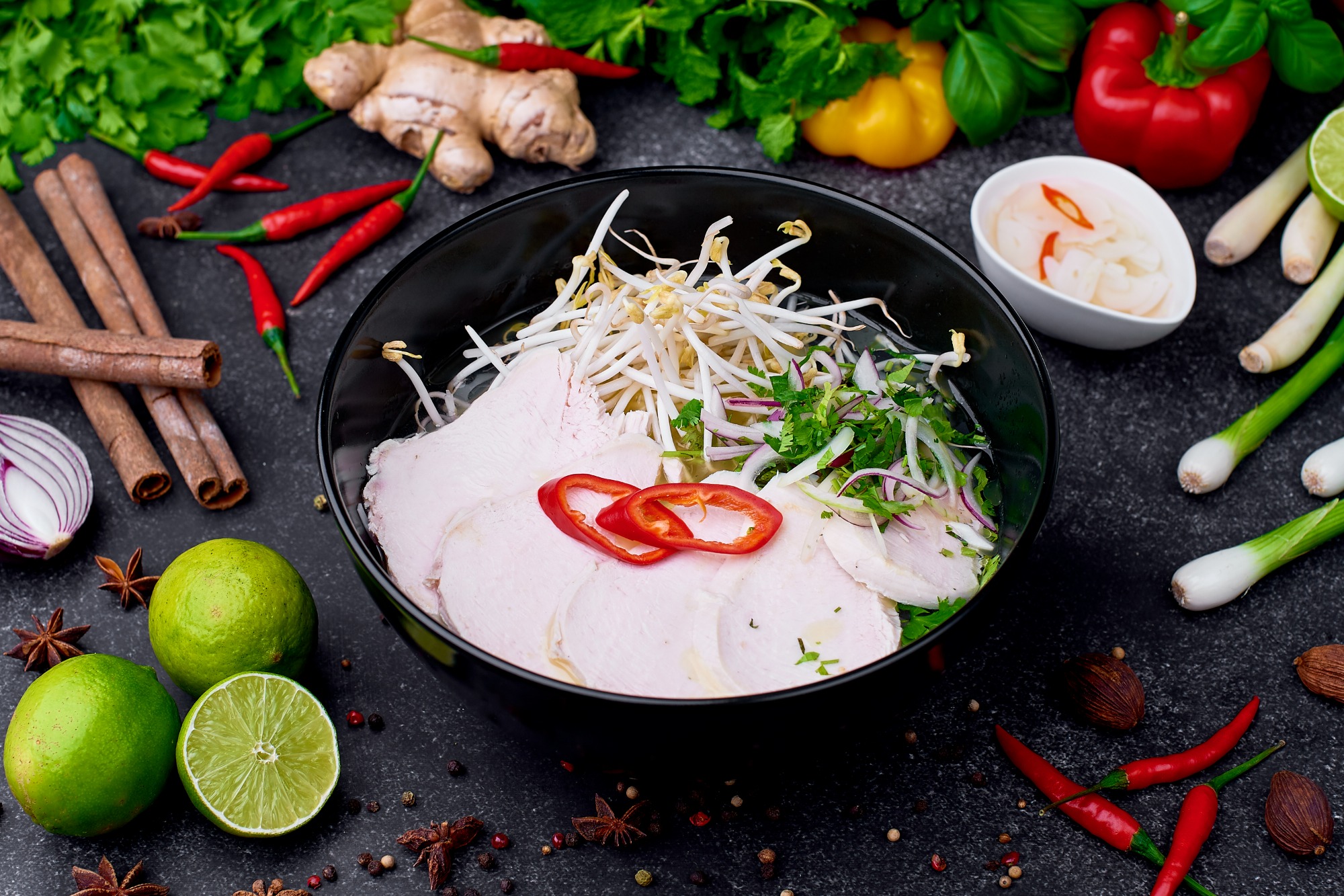Aromatyczne, zdrowe zupy z makaronem ryżowym, podawane ze świeżymi ziołami.