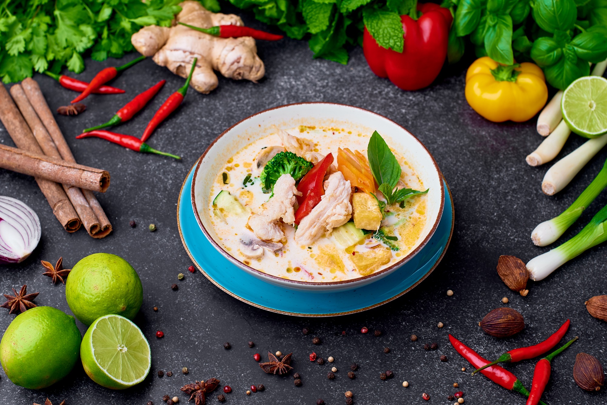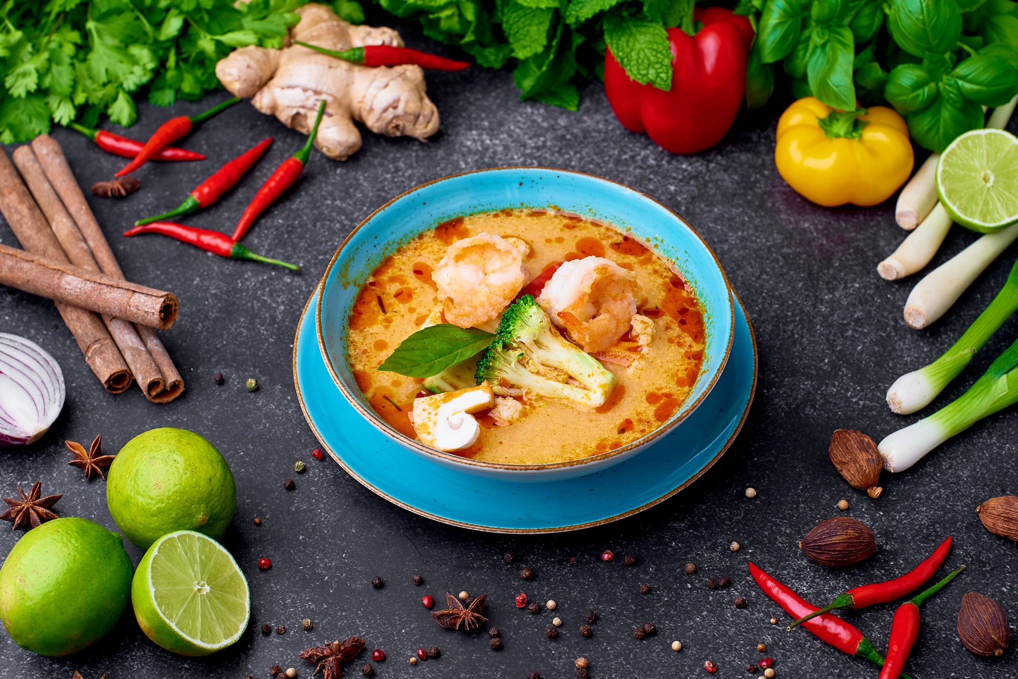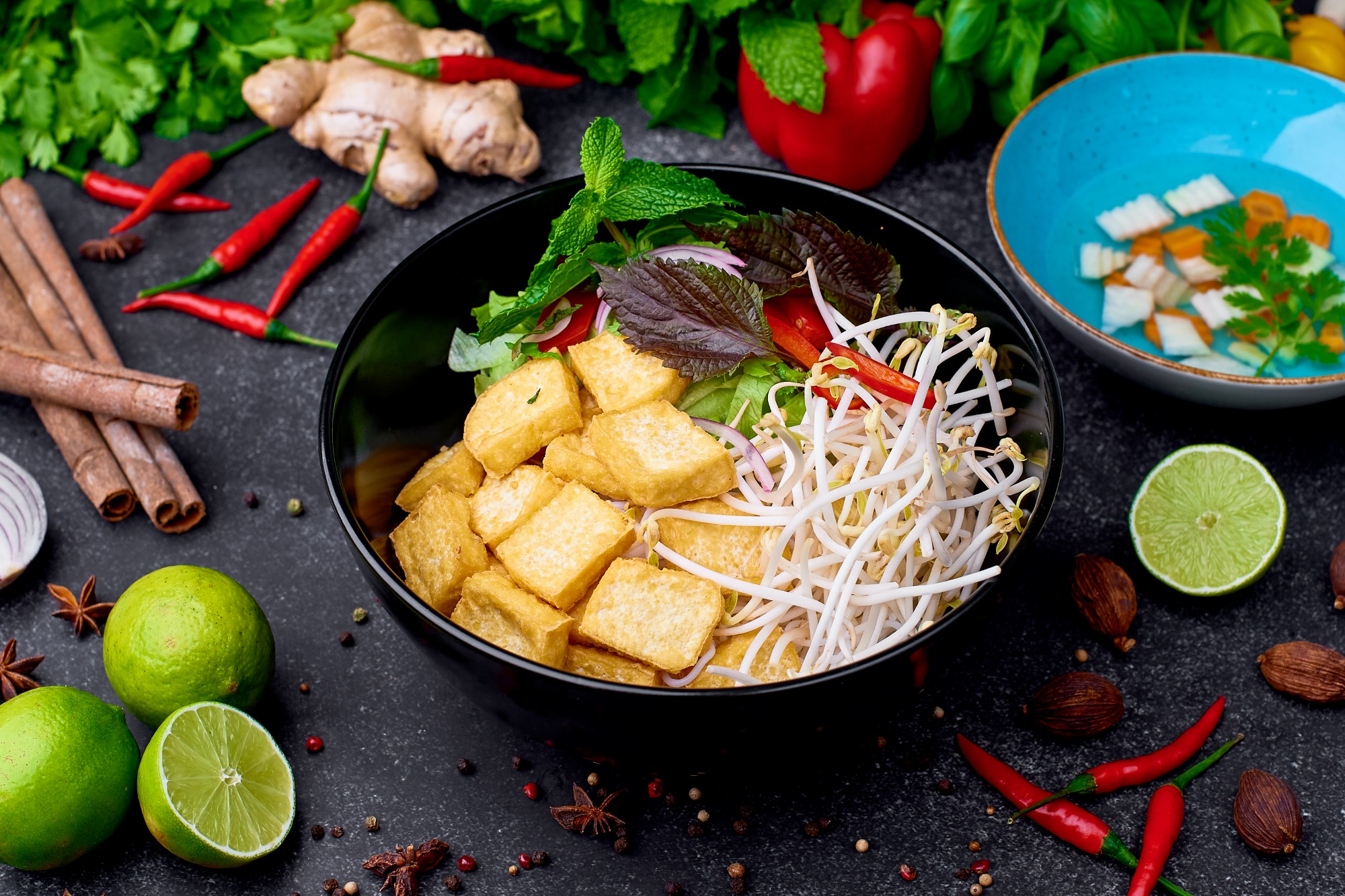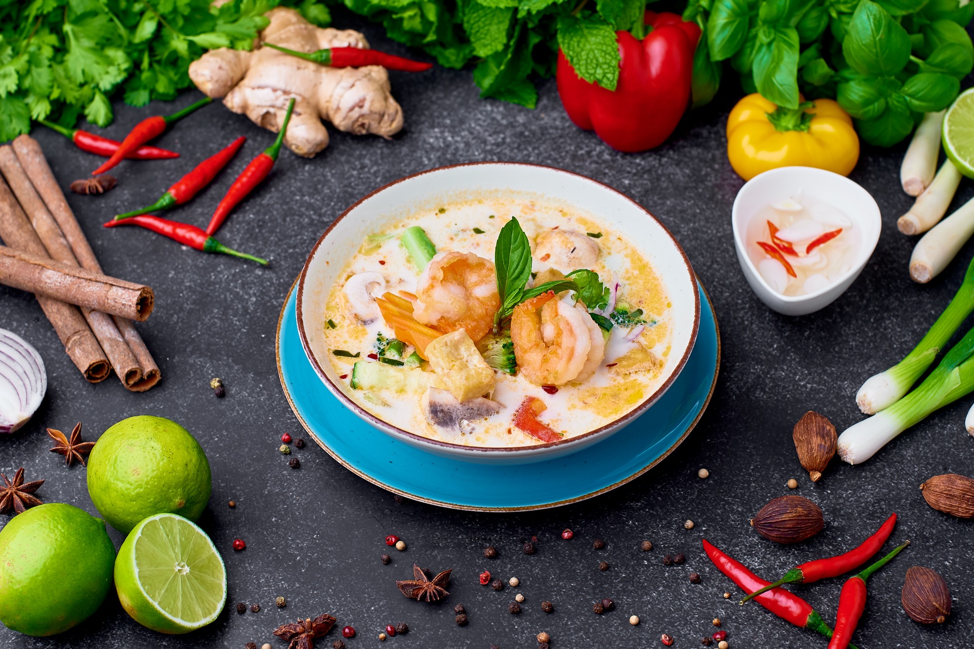 Aromatyczne, zdrowe zupy z makaronem ryżowym, podawane ze świeżymi ziołami.