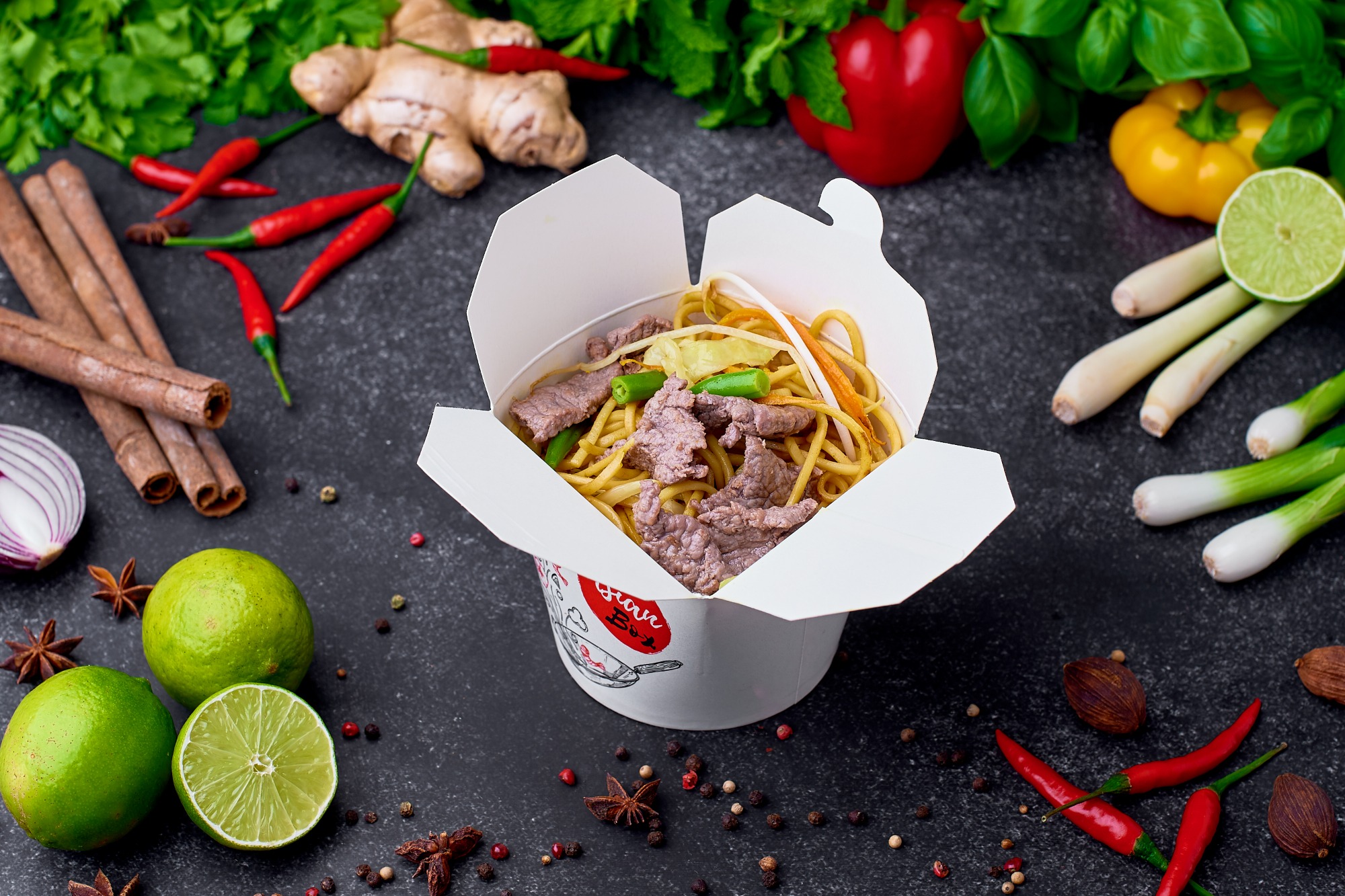 Do wyboru: smażony makaron sojowy lub smażony makaron ryżowy